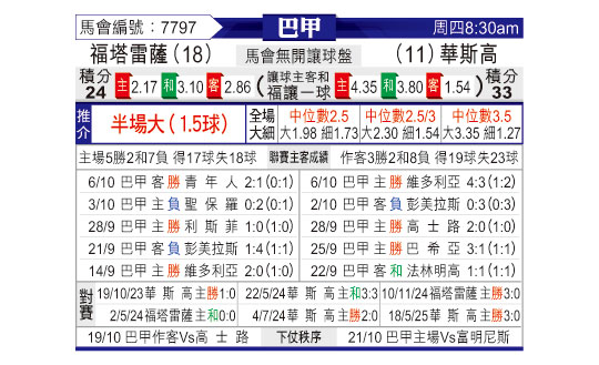 [巴西甲] 福塔雷萨vs瓦斯科达伽马