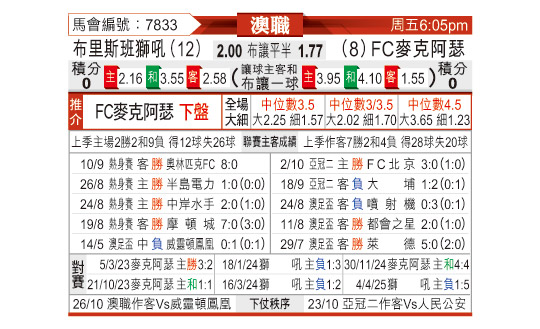 [澳超] 布里斯班狮吼vs麦克阿瑟FC