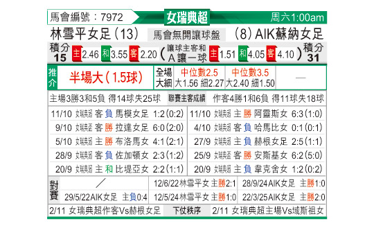 [瑞典女超] 宁高平女足vsAIK索尔纳女足