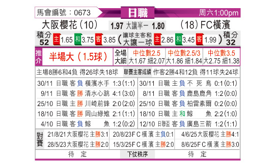 [日职联] 大阪樱花vs横滨FC