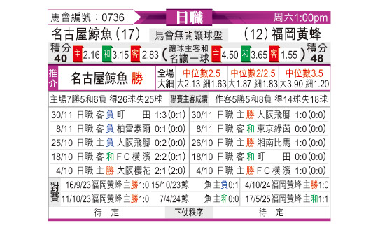 [日职联] 名古屋鲸八vs福冈黄蜂