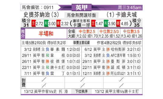 [英甲] 斯蒂文尼奇vs卡迪夫城