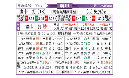 [英甲] 唐卡斯特vs斯托克港