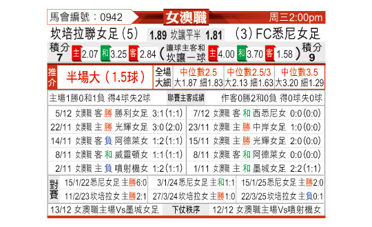 [澳女联] 堪培拉联女足vs悉尼女足