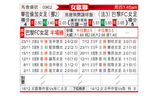 [欧女杯] 瓦勒伦加女足vs巴黎FC女足