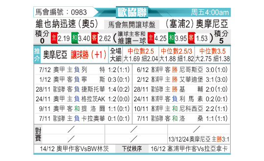 [欧会杯] 维也纳快速vs奥莫尼亚