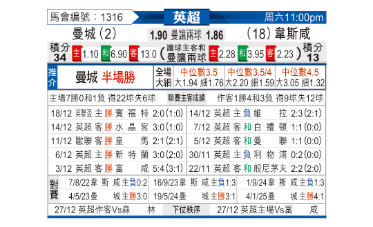 [英超] 曼彻斯特城vs西汉姆联