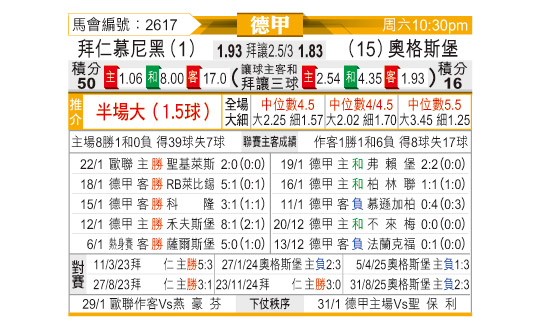 [德甲] 拜仁慕尼黑vs奥格斯堡