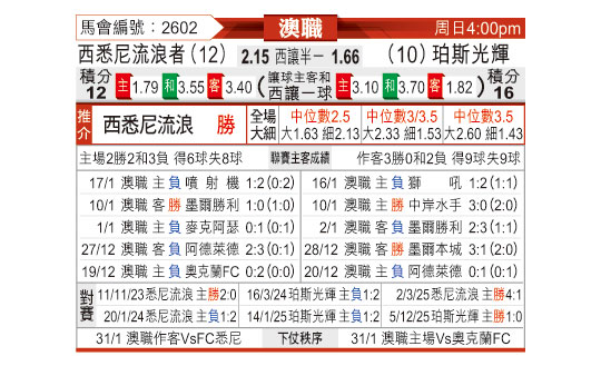 [澳超] 西悉尼流浪者vs珀斯光荣