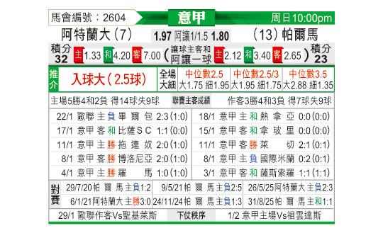[意甲] 亚特兰大vs帕尔马