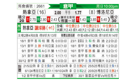 [意甲] 热那亚vs博洛尼亚