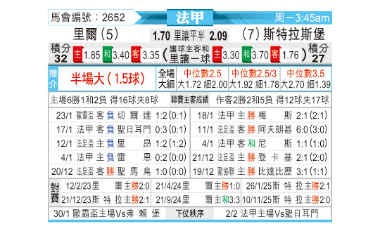 [法甲] 里尔vs斯特拉斯堡