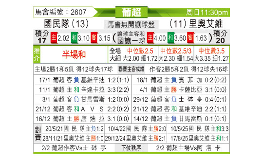 [葡超] 葡萄牙国民vs里奥阿维