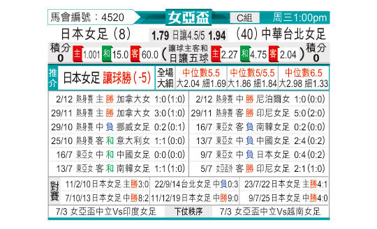 [女亚杯] 日本女足vs中国台湾女足