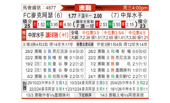 [澳超] 麦克阿瑟FCvs中央海岸水手
