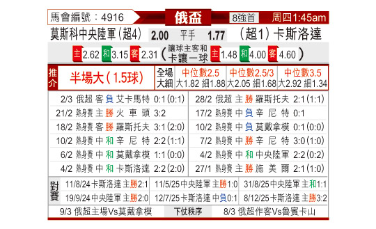 [俄杯] 莫斯科中央陆军vs克拉斯诺达尔