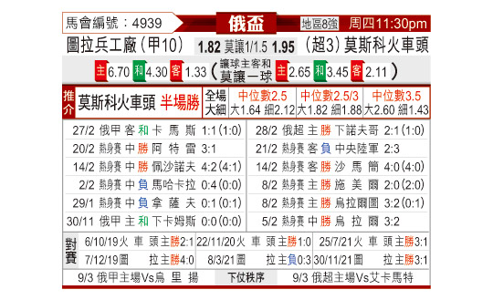 [俄杯] 图拉兵工厂vs莫斯科火车头