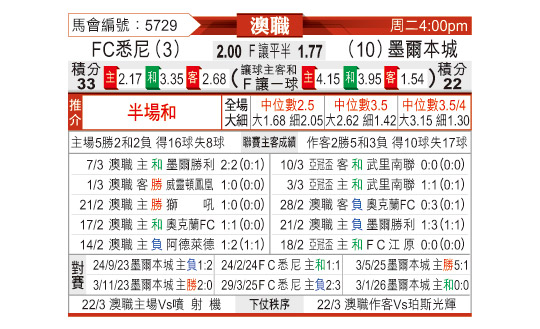[澳超] 悉尼FCvs墨尔本城