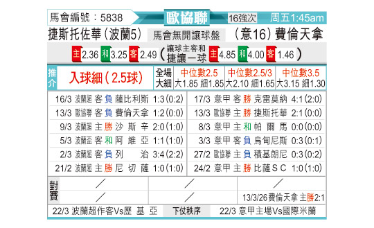 [欧会杯] 琴斯托霍瓦vs佛罗伦萨