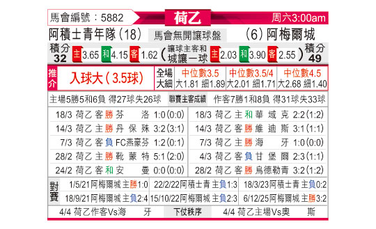 [荷乙] 阿贾克斯青年队vs阿尔梅勒城