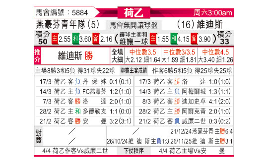 [荷乙] 埃因霍温青年队vs维迪斯