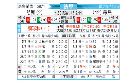 法甲 朗斯 vs 昂热