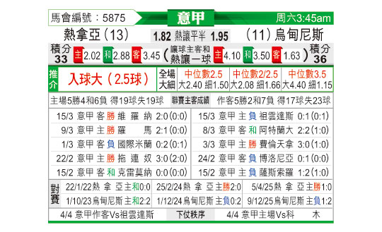 [意甲] 热那亚vs乌迪内斯