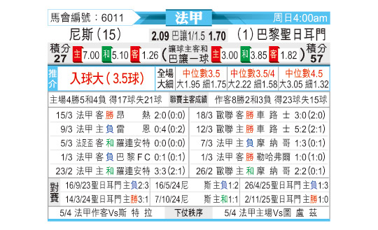 [法甲] 尼斯vs巴黎圣日耳曼