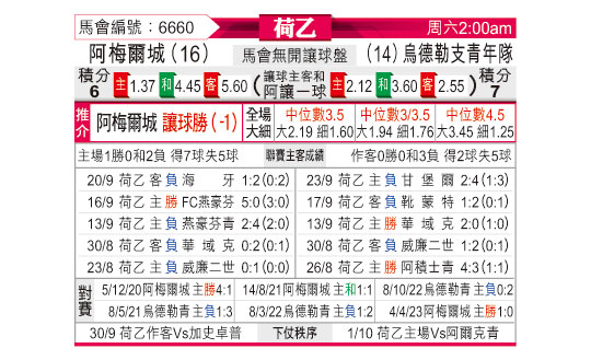 [荷乙] 阿尔梅勒城vs乌德勒支青年队