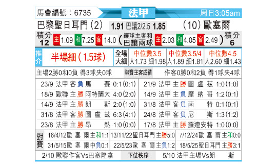 [法甲] 巴黎圣日尔曼vs欧塞尔