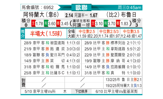 [欧冠] 亚特兰大vs布鲁日