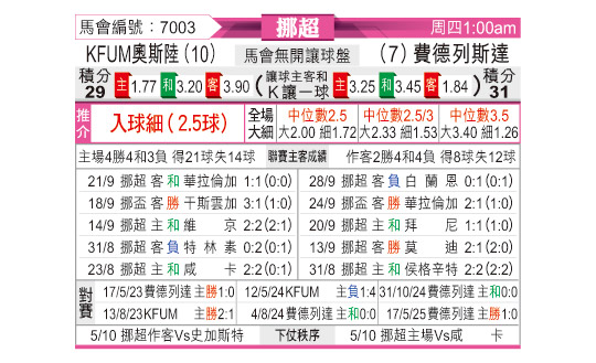 [挪超] KFUM奥斯陆vs腓特烈斯塔