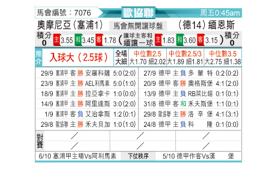 [欧会杯] 奥莫尼亚vs美因茨