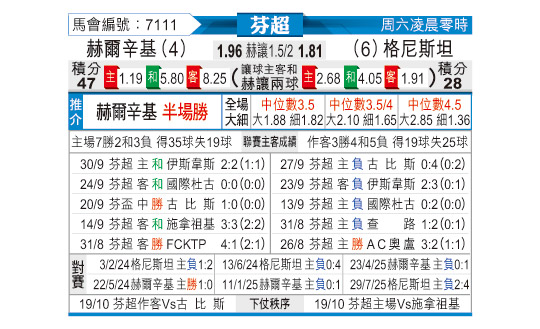 [芬超] 赫尔辛基vs格尼斯坦