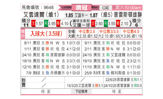 [澳锦标] 艾云达尔vs普雷斯顿莱恩