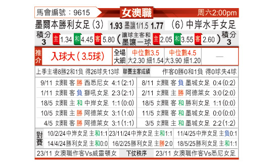 [澳女联] 墨尔本胜利女足vs中岸水手女足