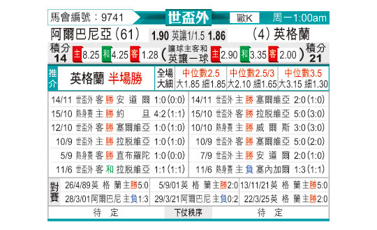 [欧洲预] 阿尔巴尼亚vs英格兰