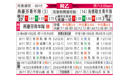 [荷乙] 埃因霍温青年队vs乌德勒支青年队