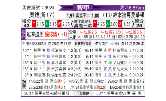 [智利甲] 奥达斯vs维尼亚德马埃弗顿