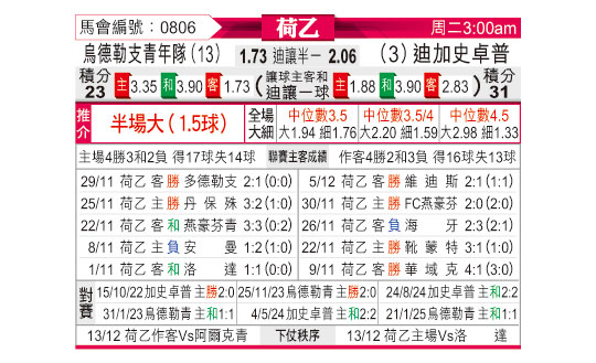 [荷乙] 乌德勒支青年队vs格拉夫夏普