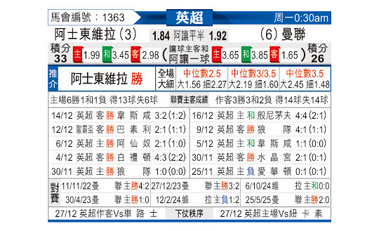 [英超] 阿斯顿维拉vs曼彻斯特联
