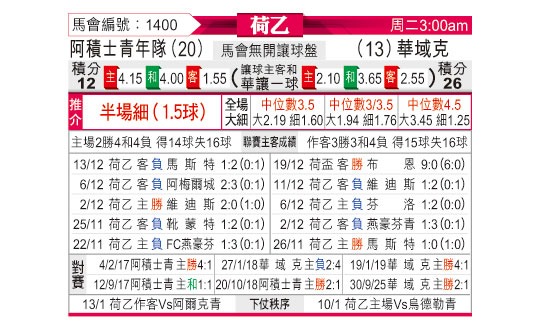 [荷乙] 阿贾克斯青年队vs瓦尔韦克