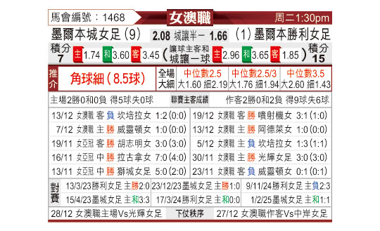 [澳女联] 墨尔本城女足vs墨尔本胜利女足