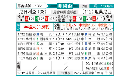 [非洲杯] 尼日利亚vs坦桑尼亚