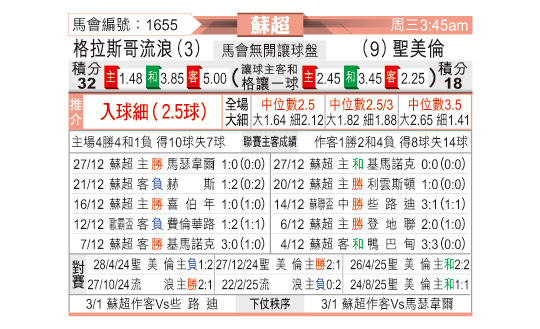 [苏超] 格拉斯哥流浪者vs圣米伦