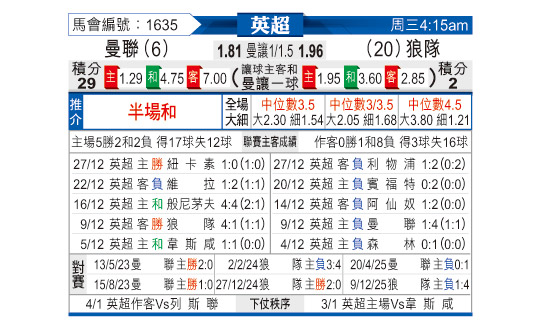 [英超] 曼彻斯特联vs狼队
