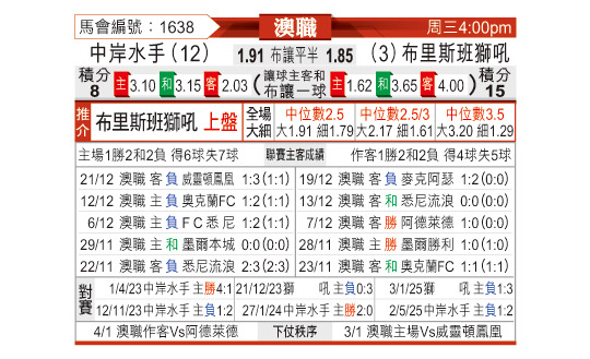[澳超] 中央海岸水手vs布里斯班狮吼