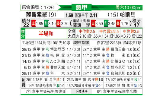[意甲] 萨索洛vs帕尔马