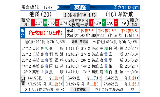 [英超] 狼队vs西汉姆联