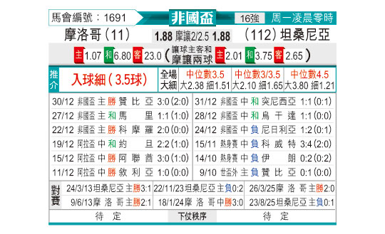 [非洲杯] 摩洛哥vs坦桑尼亚